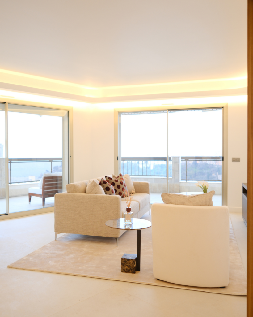 Le Beverly Palace Monaco se distingue par ses lignes épurées, ses tons neutres et ses grandes baies vitrées qui maximisent la lumière naturelle. Ses vastes terrasses, présentes dans la plupart des appartements, prolongent les espaces intérieurs vers l’extérieur et offrent des vues panoramiques sur Monaco, le Palais Princier et la mer Méditerranée.