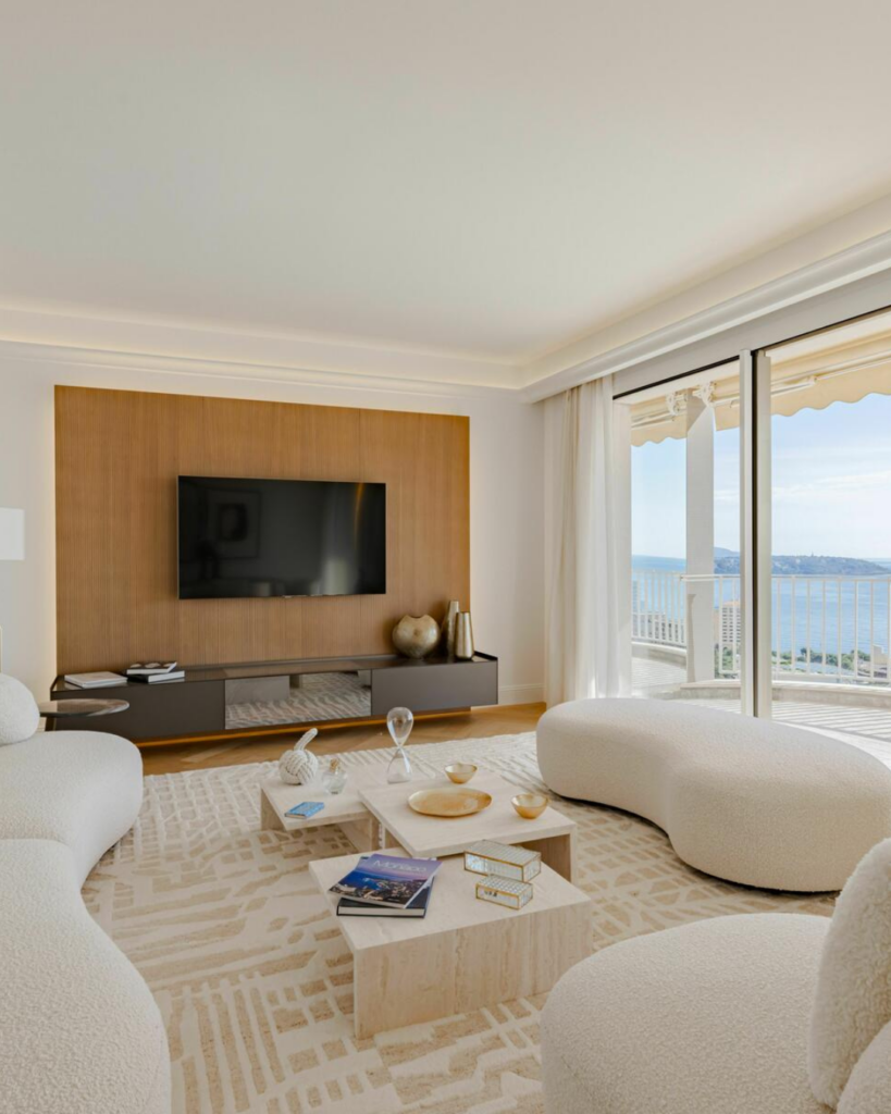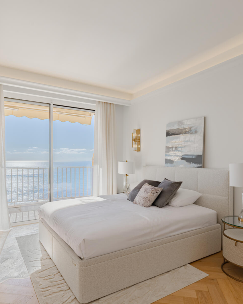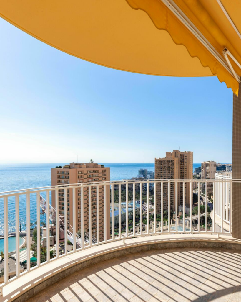 De nombreux appartements offrent des vues panoramiques sur la Méditerranée et la skyline de Monaco, mises en valeur par des baies vitrées du sol au plafond.