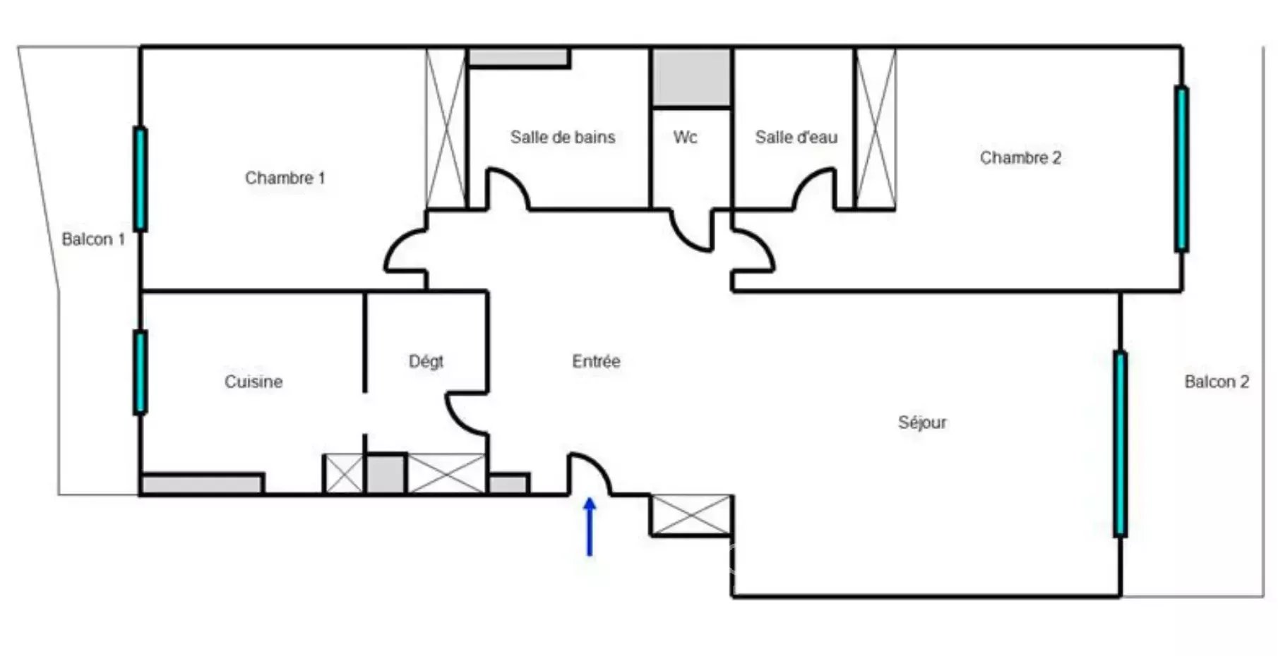 Il est actuellement composé d'une entrée desservant un salon ouvrant sur une terrasse avec vue sur la piscine, une chambre avec une salle d'eau, une chambre avec salle de bains, une cuisine, un wc séparé.