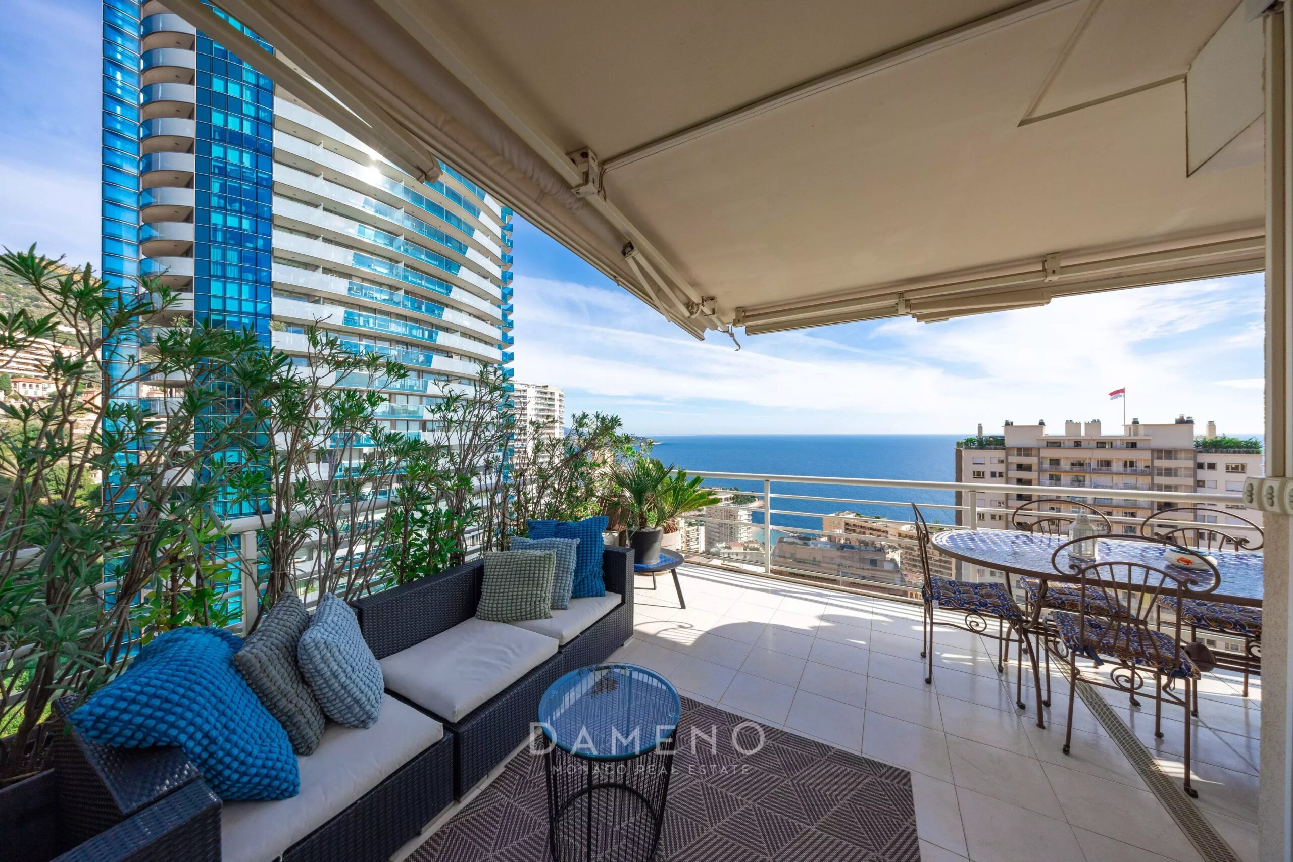 In Beausoleil, just a few minutes’ walk from Monaco, this elegant 50 m² apartment complemented by almost 59 m² of outdoor space (terrace and balcony) offers breathtaking panoramic views of the sea, the port, and the Principality - a true living postcard from sunrise to sunset.
