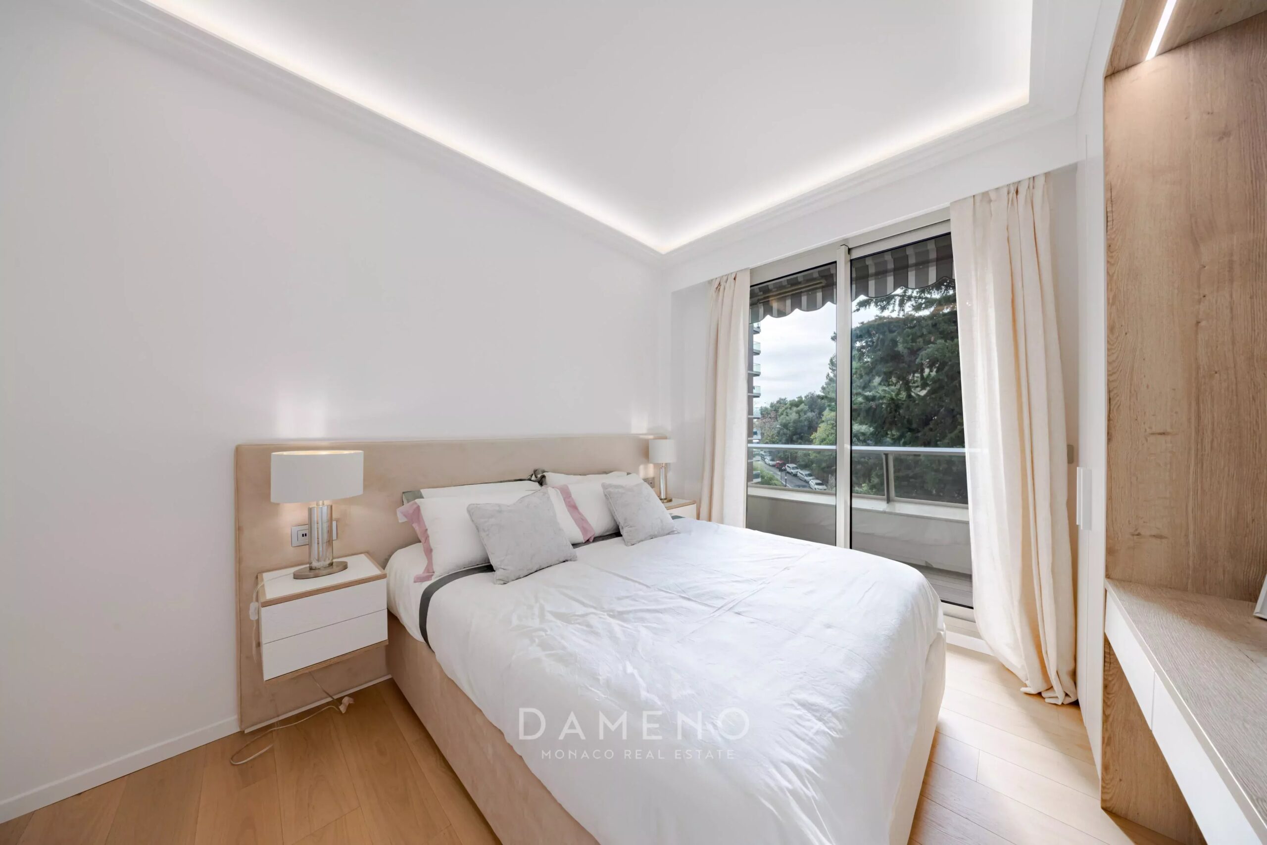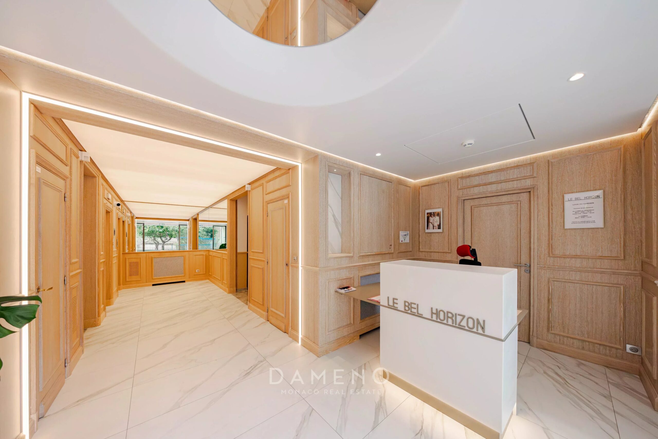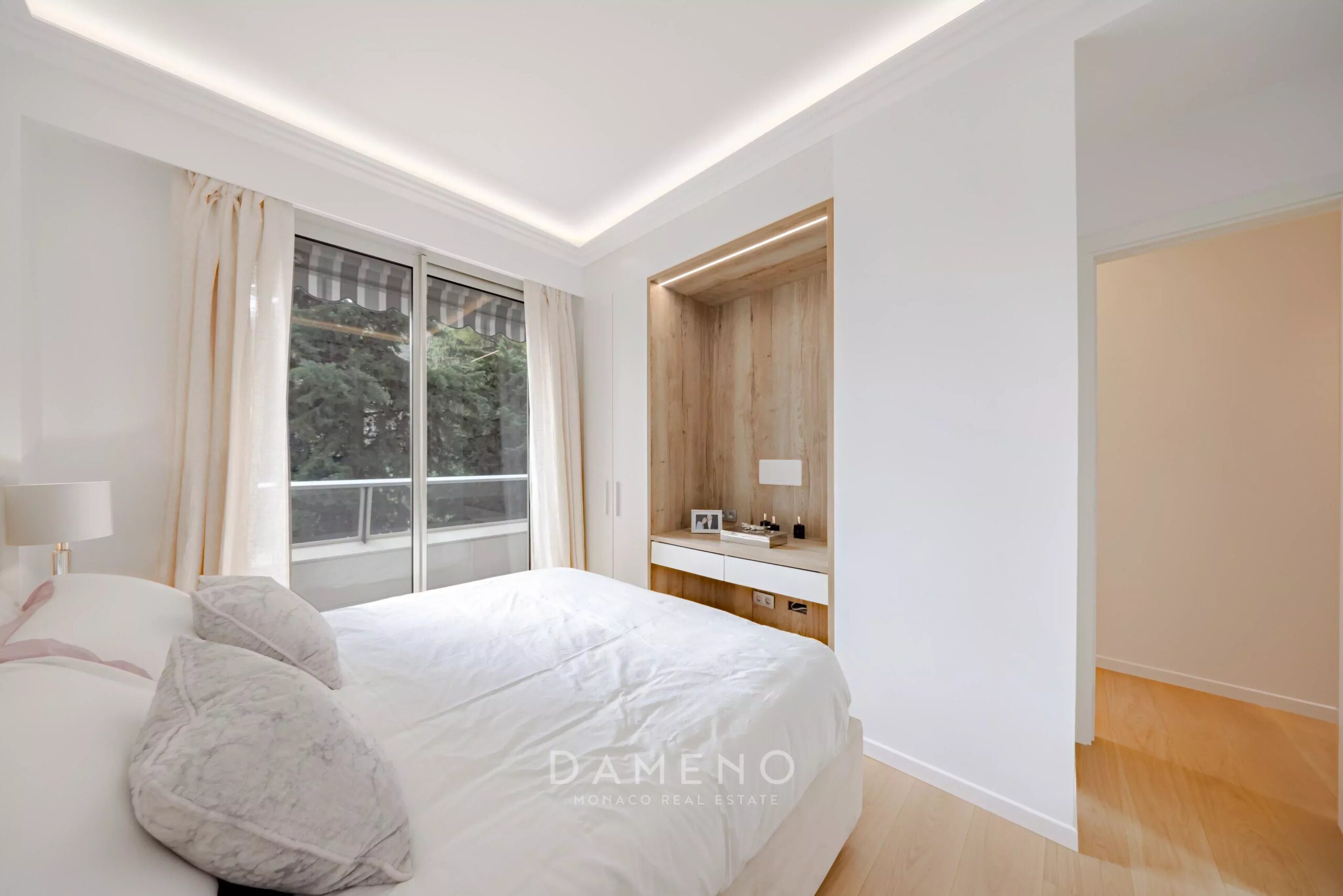 Magnificent, fully furnished and renovated 3-room apartment located in the luxury Bel Horizon residence in the Jardin Exotique district, with concierge service and elevator access.