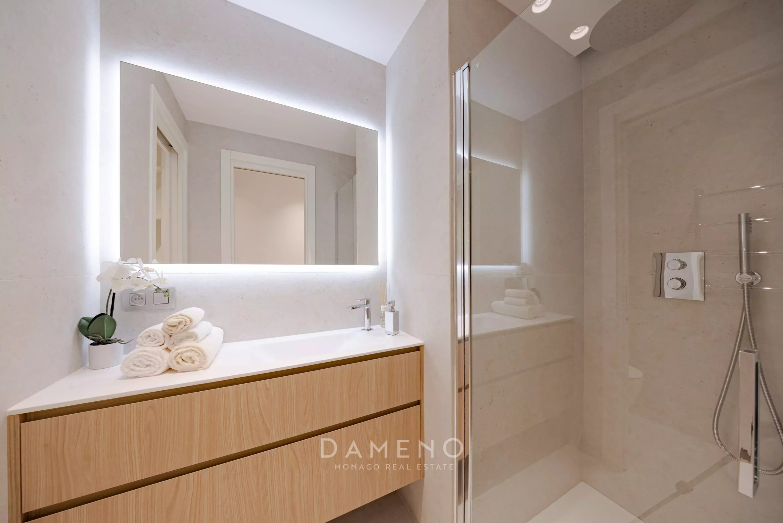 The Jardin Exotique district offers a peaceful living environment close to schools, shops, and public transport, ensuring quick access to Monaco city center and a stone's throw from the Moyenne Corniche, easily accessible from France.