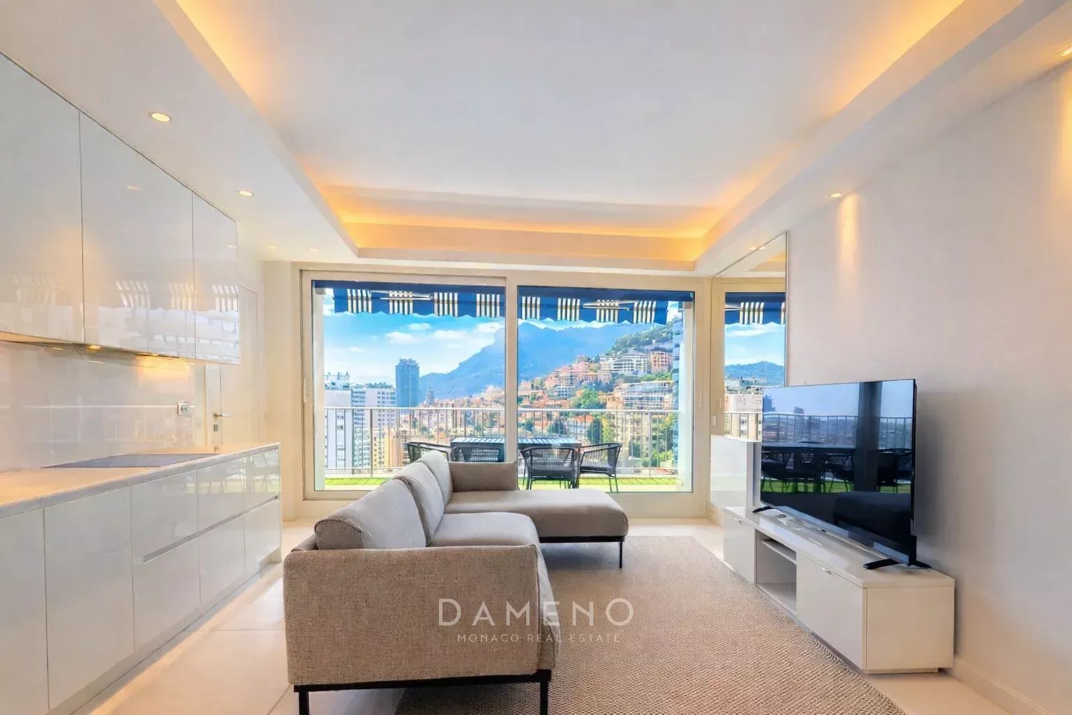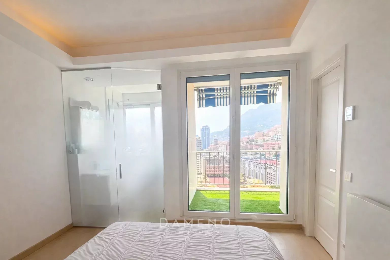 Fully renovated using bright, elegant materials, the apartment features a south-facing, light-filled living room with a fully equipped open-plan kitchen, opening onto a lovely terrace with open views over Monaco and the sea. The sleeping area includes a master suite with en-suite bathroom and dressing room, as well as two double bedrooms, each with its own bathroom.