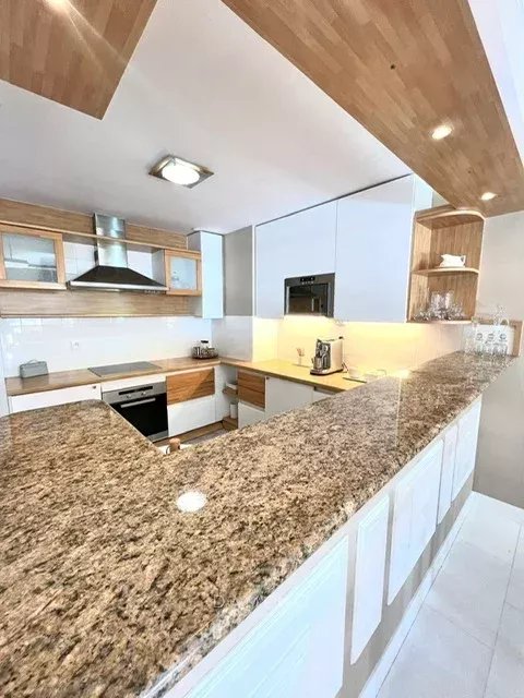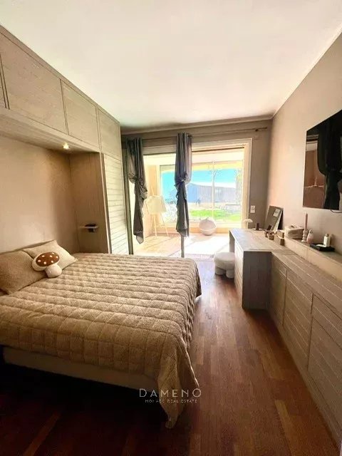 This very beautiful apartment consists of an entrance hall with cloakroom and guest toilets, a bright living/dining room and a large fully equipped open kitchen, 3 bedrooms each with a bathroom or shower ensuite, many storage spaces, large terraces, and private garden.