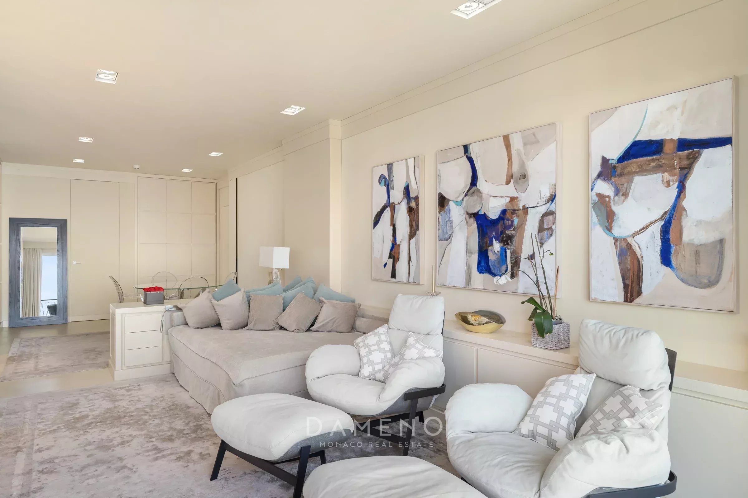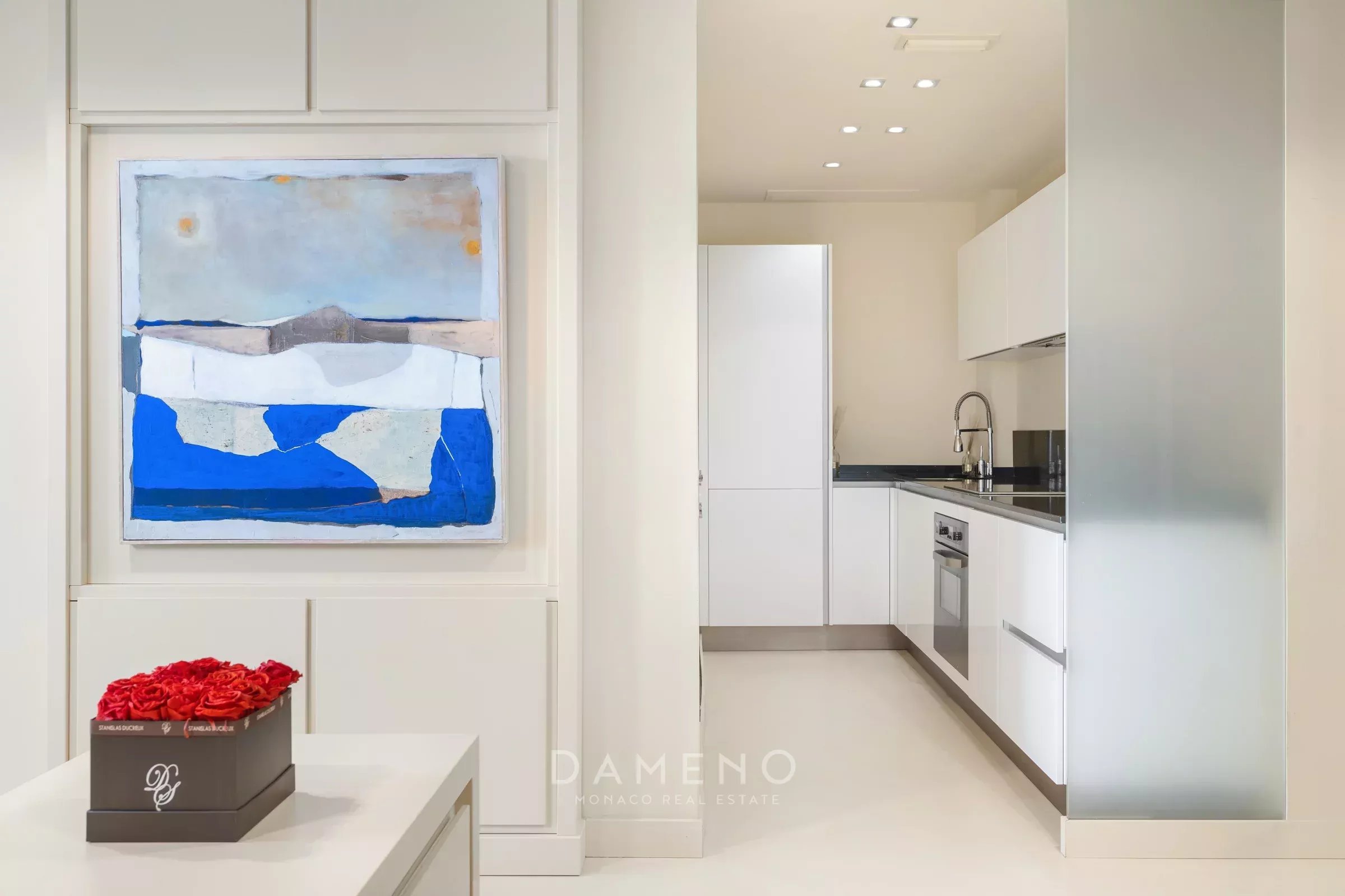 Beautiful 2-bedrooms furnished apartment, new condition, located in the Le Continental building, on Place des Moulins, with concierge service, close to transport and shops, bar, restaurants, easy elevator access to the beach, the Grimaldi Forum and close to the Carré d'Or.