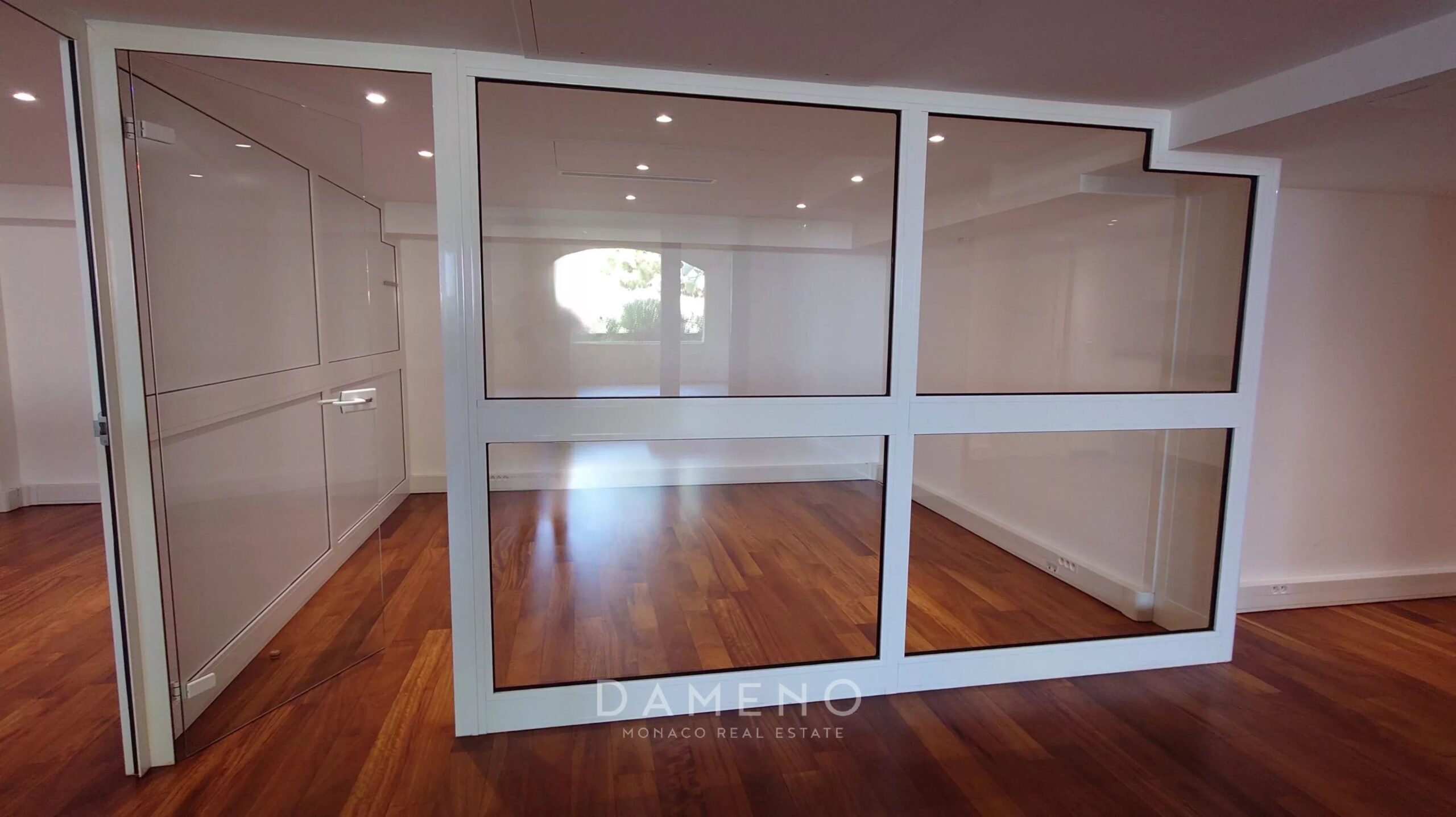 We offer administrative offices with a surface area of 94 m² in perfect condition and a quiet location (ground floor overlooking the gardens) located in the "Le Raphaël" Residence in the Fontvieille district.
