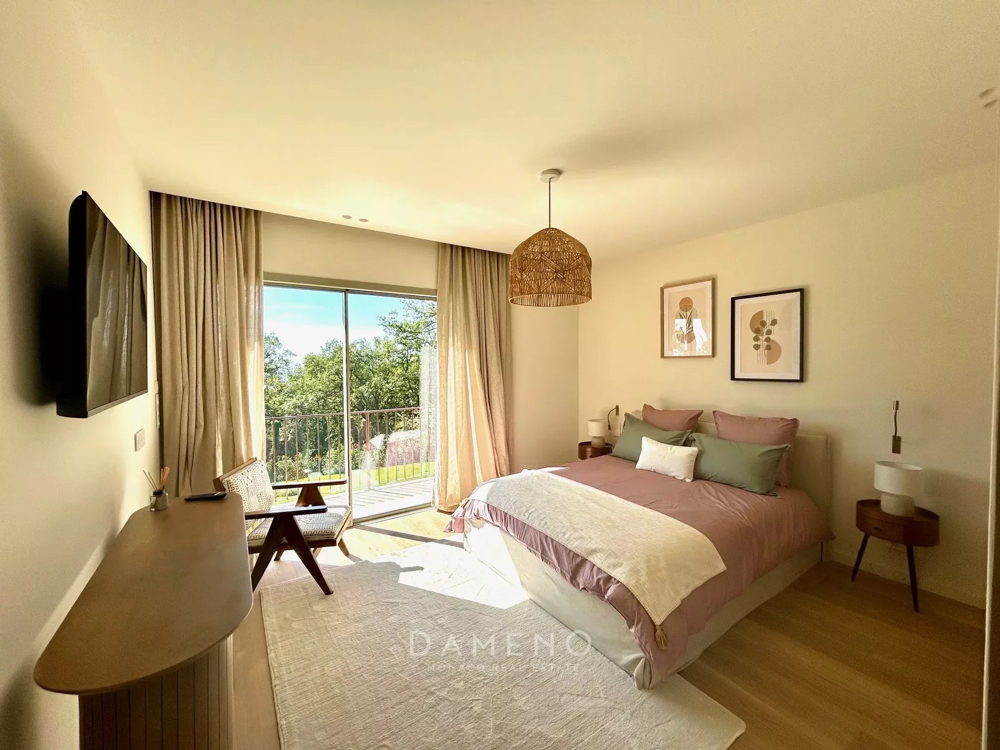 Upstairs, the master suite features a dressing room, an elegant bathroom, and a private balcony. Two further bedrooms with shower rooms and a south-facing terrace complete this level.