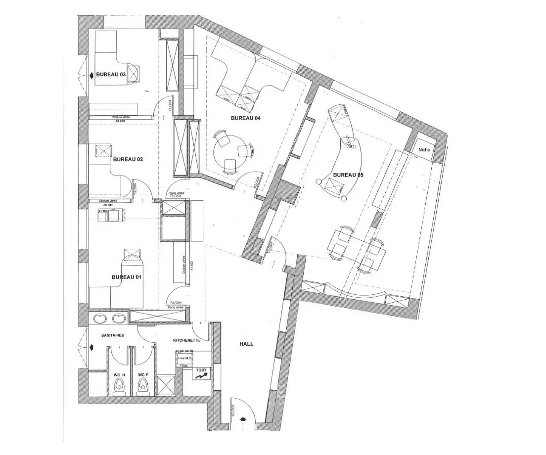 This spacious 147 m² prestige office, situated on the first floor of Block B, is arranged into five distinct work zones and tastefully decorated. Two private parking spaces complete this rare property.