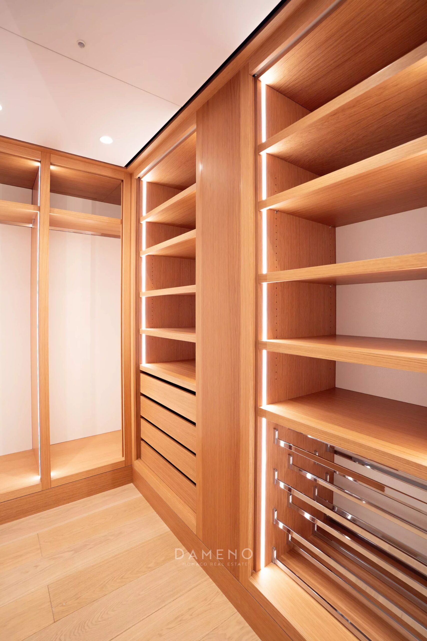 The principal suite is designed as a private domain, featuring extensive dressing areas and an elegant marble bathroom. Two further bedroom suites, each with bespoke storage and en-suite facilities, provide complete comfort for family or guests.