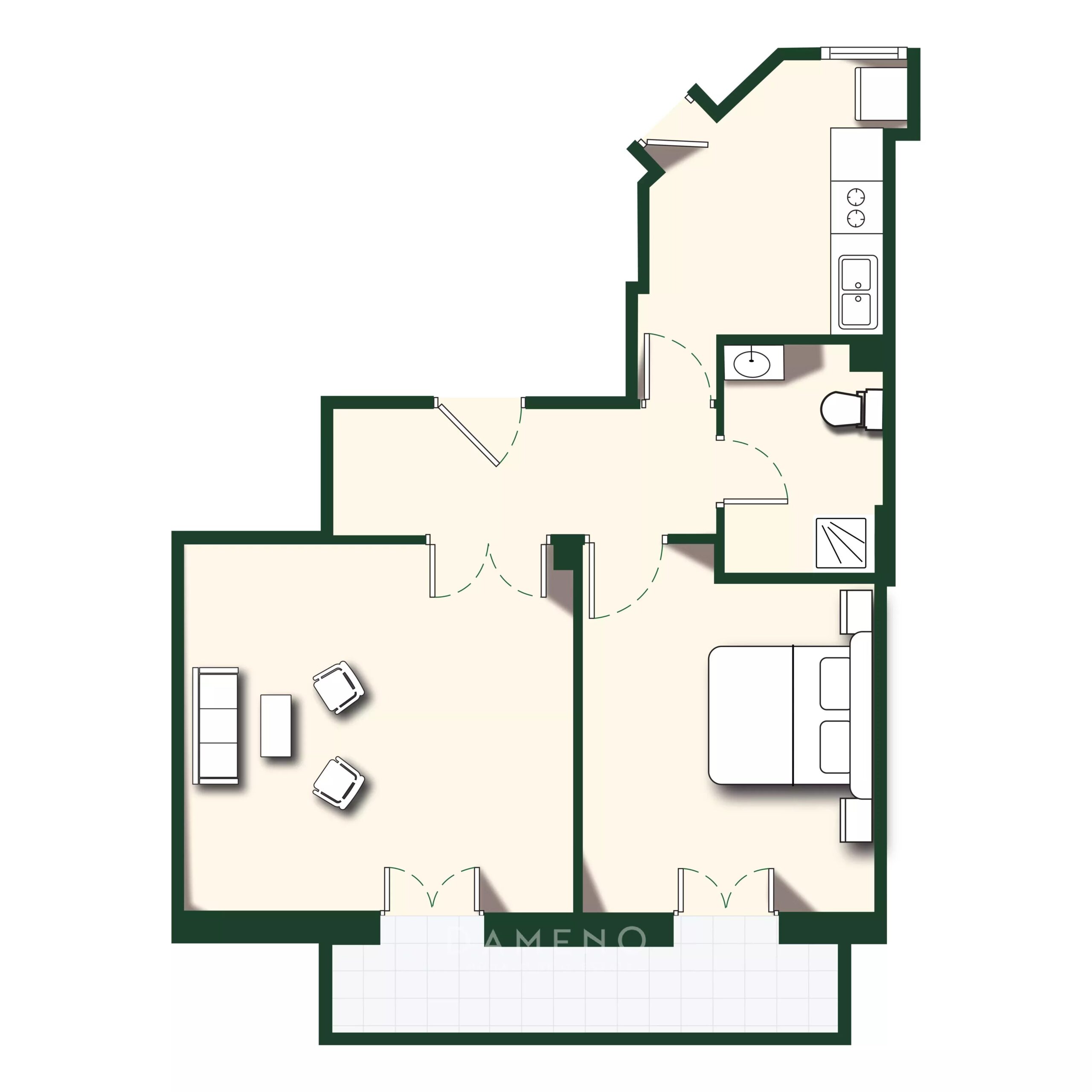3-room renovated and furnished Bel Horizon.