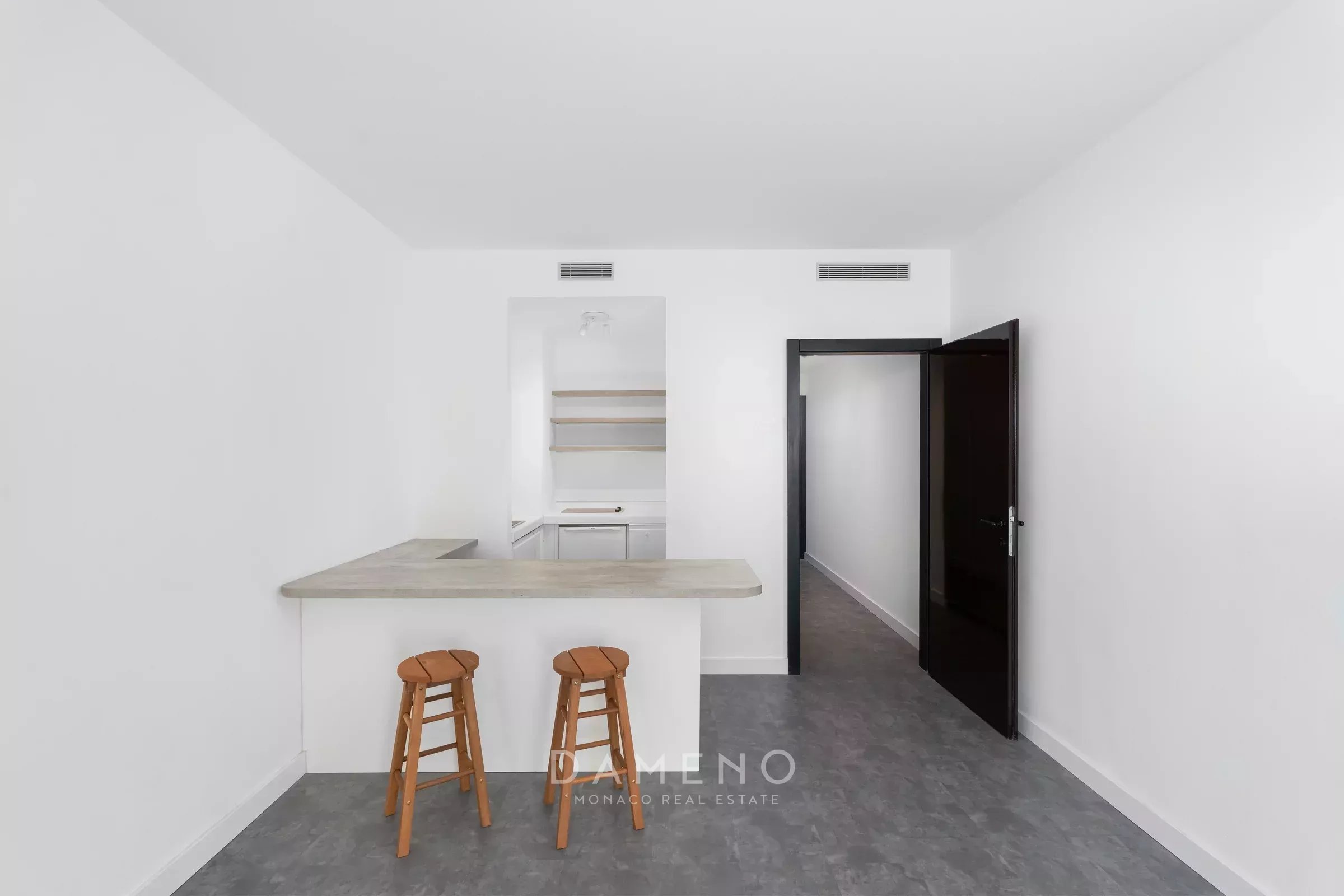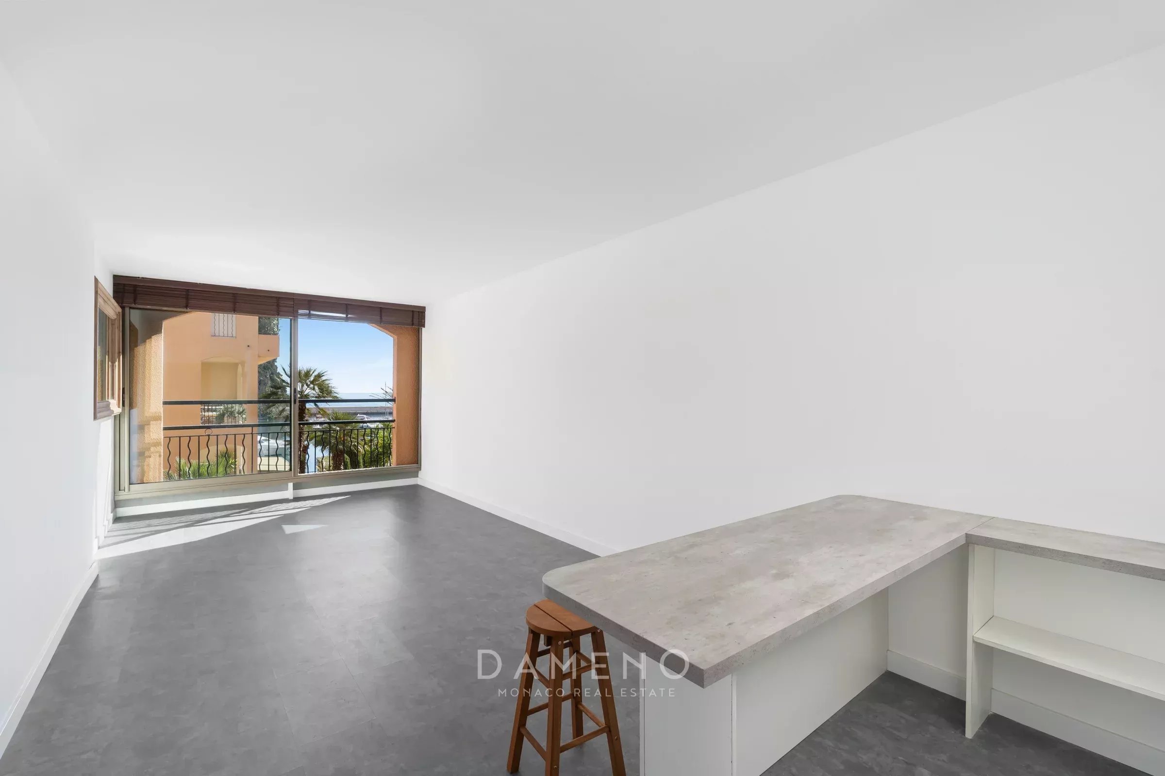 This fully renovated studio of 43 m² in total, comprises an entrance, a main room with harbour and garden views, a large bathroom with toilet, and a furnished and equipped kitchen. The apartment is equipped with an air conditioning and heating system managed by the building.