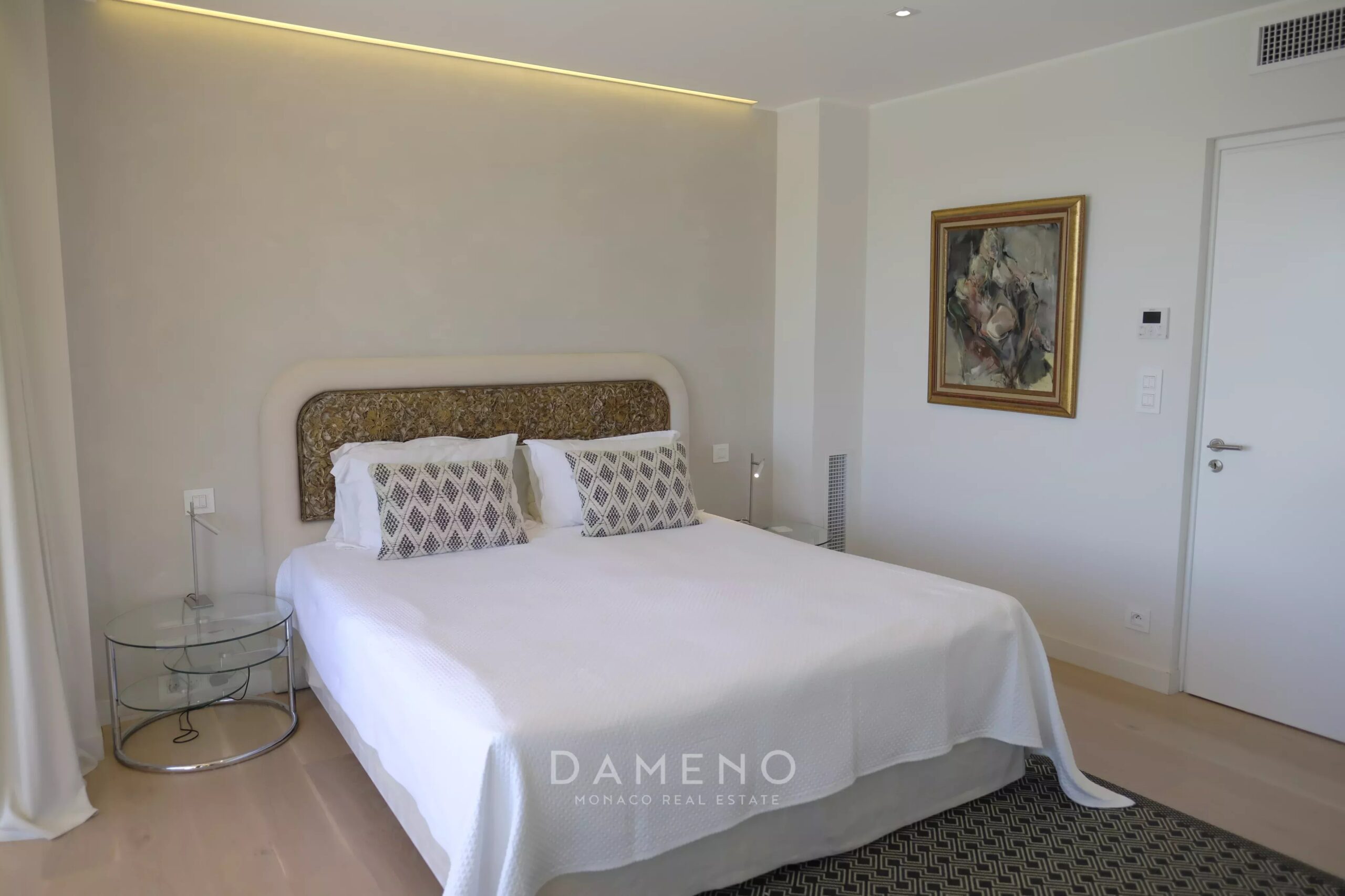 Discover an exquisite rental opportunity in the heart of Roquebrune-Cap-Martin, where luxury meets Mediterranean charm. This expansive 250 m² apartment boasts six spacious rooms, seamlessly blending modern amenities with elegance. The living area features a cozy fireplace and air-conditioning, ensuring comfort in every season. The double glazing and sliding windows invite abundant natural light, while electric shutters offer privacy at the touch of a button.