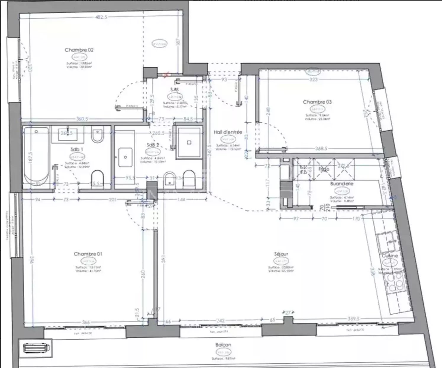 Sold with a parking space in a nearby building in France.