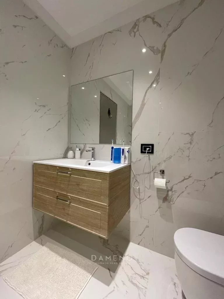 This apartment in the Jardin Exotique district comprises a spacious living and dining room, a fully equipped kitchen opening onto the living room and offering panoramic views of Monaco and the city, a laundry room, an en suite bedroom with fitted closets and a private bathroom. A bedroom with its own shower room.